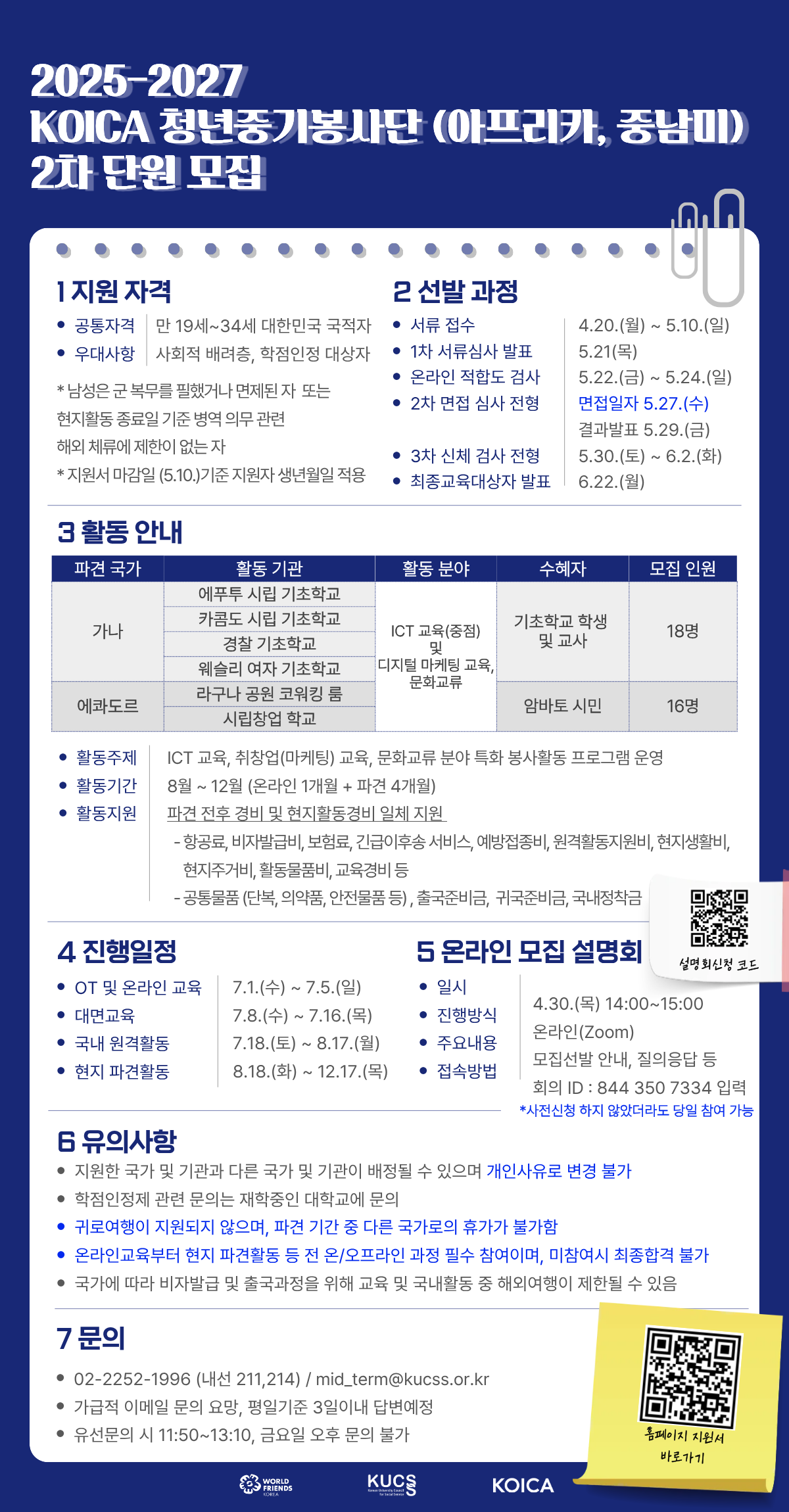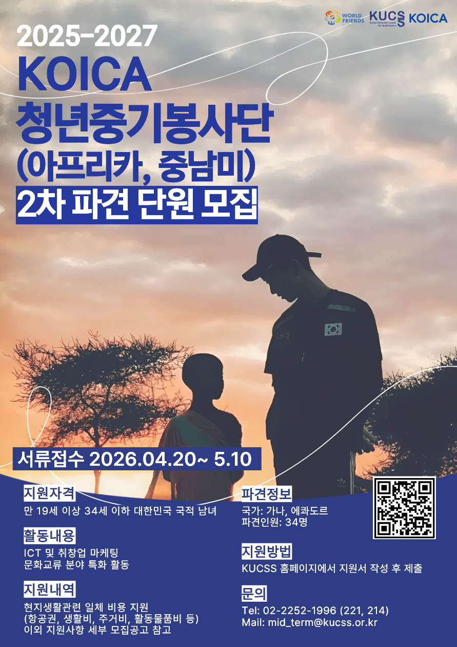 [모집안내] 2025-2027 KOICA-청년중기봉사단(아프리카,중남미) 2차 단원 모집